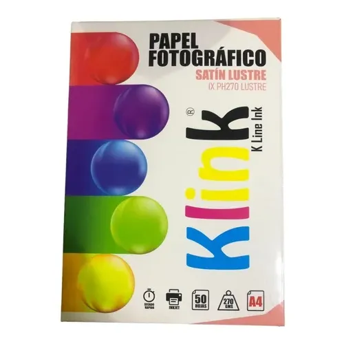 Papel Fotografico Satin Lustre 270g Con 50 Hojas Klink Blanco